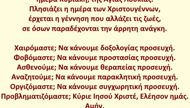 ημέρα Κυριακή, της Αγίας Λουκίας.