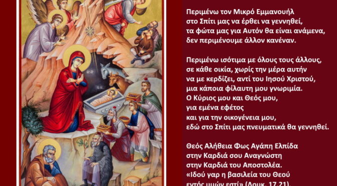 Περιμένω τον Μικρό Εμμανουήλ στο Σπίτι μου να έρθει να γεννηθεί.