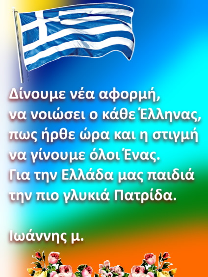 να σηκώσουμε τον ήλιο πάνω από την Ελλάδα, ομπρός βοηθάτε να σηκώσουμε τον ήλιο πάνω από τον κόσμο! Tι ιδέτε, εκόλλησεν η ρόδα του βαθιά στη λάσπη, κι α, ιδέτε, χώθηκε τ’ αξόνι του βαθιά μες στο αίμα! Ομπρός παιδιά, και δε βολεί μονάχος του ν’ ανέβει ο ήλιος, σπρώχτε με γόνα και με στήθος, να τον βγάλουμε απ’ τη λάσπη, σπρώχτε με στήθος και με γόνα, να τον βγάλουμε απ’ το γαίμα.
