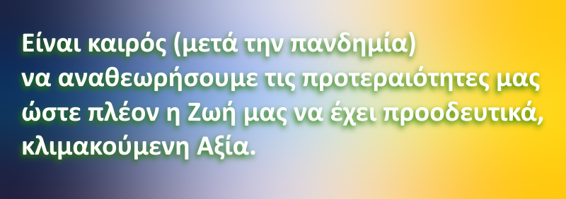 Μάλλον επιδιώκουμε, Ράθυμη Ζωή και είναι καιρός (μετά την πανδημία) να αναθεωρήσουμε τις προτεραιότητες μας ώστε πλέον η Ζωή μας να έχει προοδευτικά, κλιμακούμενη Αξία.